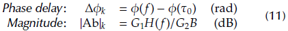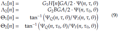 and {G, G1, G2} are the carrier frequency and the gains assigned to transmitter and receivers amplifiers.