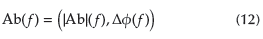 Finally, the proposed concentration indicator was calculated, averaging the calculated absorbance levels in amplitude and phase for the most representative selected bandwidth (4 125 to 4 410 MHz). We used a polar visualization of the computed frequency-dependent complex absorbance Ab(f) (magnitude and phase in Equation (11):
