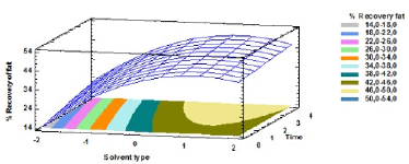 Figure 2: Response surface plot of interaction between solvent type and extraction time