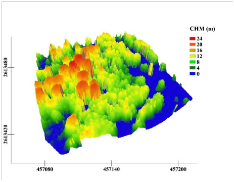 Figure 5: 3D perspective view of the study area based on the canopy height model