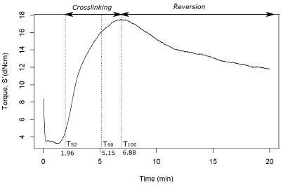 Figure 1: Rheometer curve for the vulcanization of chewing gum waste in Mix A at 413 K