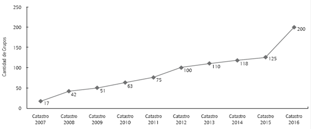 Gráfico 1: Evolución de los grupos económicos en Ecuador (2007-2016). Fuente: SRI (2016b).