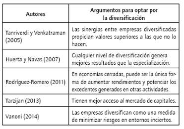 Tabla 3: Criterios que explican la diversificación de las empresas.