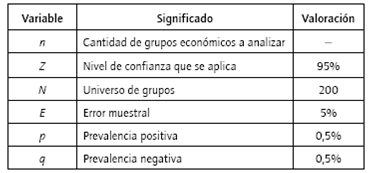 Para 2016, según el SRI, el número de grupos económicos en Ecuador ascendía a 200, por lo que la investigación parte de dichos datos censales actualizados con la finalidad de estar acorde al ente regulador. Con este universo, se aplicó el muestreo aleatorio simple, que se implementó con la ecuación 1, ya que, para los fines que se persiguen en este artículo, la metodología aplicada es muy útil para poblaciones pequeñas que han sido identificadas y listadas (Ávila, 2006), tal como lo ha hecho el SRI.