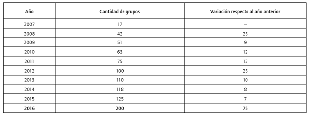 Tabla 6: Evolución del censo de grupos económicos 2007-2016.