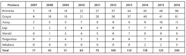 En el gráfico 1 se puede observar la evolución de los CE en Ecuador, pasando de 17 en el 2007 a 200 en el 2016, por lo que es necesario identificar y comprender qué tipos de estrategias de crecimiento han implementado localmente para conseguirlo.
