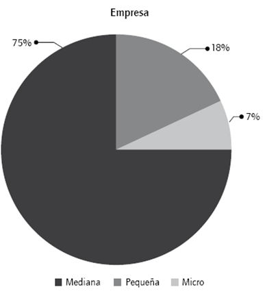 Gráfica 1: Distribución de empresas en la muestra según tamaño. Fuente: elaboración propia con base en los resultados del proyecto.