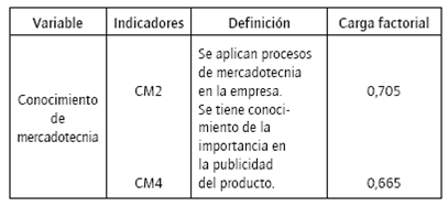 Con respecto a la variable conocimiento de mercadotecnia (tabla 4), la evidencia permite afirmar que contar con elementos de la administración estratégica ofrece dirección y certeza a las actividades de la empresa, apoyándose en un elemento crucial para mantener el contacto con los clientes, tal y como lo permite un apropiado plan de publicidad. Las variables que refuerzan el conocimiento de mercadotecnia relativos al involucramiento de los trabajadores en los procesos, así como la importancia que tiene la mercadotecnia para que se logre el desarrollo de la firma, fueron los ítems con mayor relevancia dentro del rubro conocimiento de mercadotecnia.