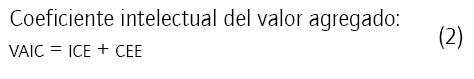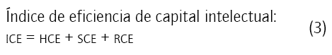Donde ICE es el índice de eficiencia de capital intelectual y CEE es el índice de eficiencia del capital físico y financiero.
