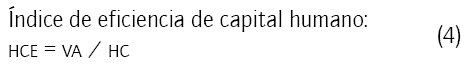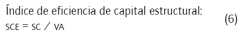 Donde SC muestra la eficiencia de la inversión al aspecto estructural, depende de la creación de valor agregado y en proporción inversa al HC. Esto significa que cuanto mayor sea la proporción de HC en el valor agregado (VA), será más pequeño el porcentaje de capital estructural (SC)1; su cálculo es: SC = VA - HC.