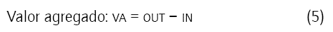 Donde out equivale a ventas o ingresos totales; IN representa el costo de compra de materiales, componentes y servicios. El valor agregado se puede calcular a partir de las cuentas de la empresa: VA = OP + HC + D + A, donde OP representa la utilidad de operación; HC son los costos de los empleados (esto responde a la demanda de dar a los empleados la condición de recurso clave, tratándolos como inversión y no como costos), d es depreciación y a es amortización.