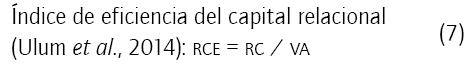 Al modelo original VAIC, algunos investigadores (Chang, 2007; Nazari y Herremans, 2007; Ulum et al., 2014) han propuesto la extensión RC como parte del ICE; con el fin de hacer más comprensiva la medida, proponen el cálculo de RC integrando los costos de mercadotecnia como una medida proxy.