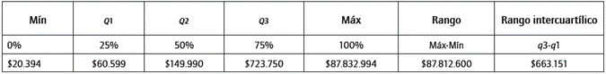 Tabla 10: Análisis de cuartiles pérdidas RO eventos 1, 2 y 3.