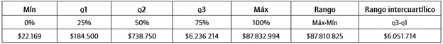 Las distribuciones de pérdidas por riesgo operacional de esta entidad, agrupadas por línea de negocio y tipos de eventos, presentan características de alta curtosis y asimetría a la derecha. Además, los estadísticos de orden analizados como cuartiles, mediana, rango y rango intercuartílico evidencian la alta dispersión de los datos que se encuentran en la cola superior con características de distribuciones asintóticas de extremo. Por lo tanto, se hace necesario realizar análisis que permitan modelar la cola derecha de la distribución para aplicar técnicas que se ajusten al comportamiento de estos datos, como la teoría de valor extremo, la teoría de cópulas, entre otras.