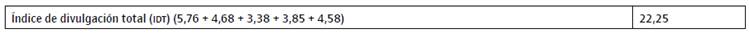 3. Índice de divulgación total. Este mide la divulgación total de los ayuntamientos del Alentejo y se calcula como el sumatorio de los índices de divulgación por dimensión (anexo 3).