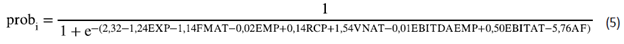 Considerando a mesma estimativa, pelo mesmo modelo e para cinco anos antes da falência, obtém-se a seguinte expressão (equação 5).