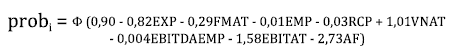 A expressão obtida através da estimativa probit para a previsão de cinco anos antes da falência é a seguinte: