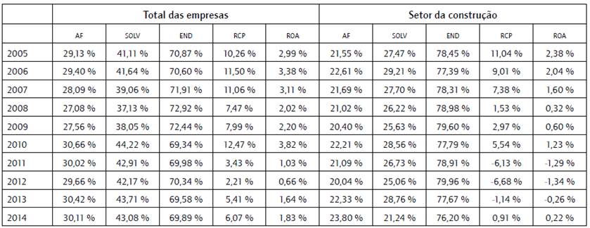 Indubitavelmente, as empresas portuguesas foram bastante afetadas pela crise financeira, apresentando indicadores pouco favoráveis à sua sustentabilidade económico-financeira. Por conseguinte, o setor da construção não foi exceção, sendo fortemente afetado e apresentando indicadores ainda menos favoráveis que a média das empresas não financeiras, notadamente de 2008 até 2012. Pela análise dos dados, afere-se, no entanto, uma tendência inversa a partir de 2013 inclusive, o que poderá ser sinónimo de recuperação do setor.