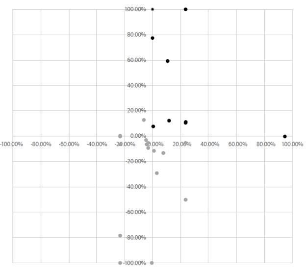 As the methodology explains, in order to build the MORE it is necessary to calculate the performance of the territory regarding MCDS and the performance of the company regarding CRI reports (Niño-Muñoz, 2016). First, each selected MDC must be evaluated versus their relationship with the National Goal (NC). Therefore, the NC should become the x axis of the MORE. Then, if MCDi > NC, Bogotá has achieved a good performance and will be placed in the upper quadrants. Otherwise, if MCDi < NC, the city will be ranked in the lower quadrants. On the other hand, it is important to correctly interpret each CRI indicator. For example, when the energy consumption per capita or the infant mortality rates increase it represents a negative impact on the environment and the society. In these cases, the variation rate must be preceded by a minus sign.