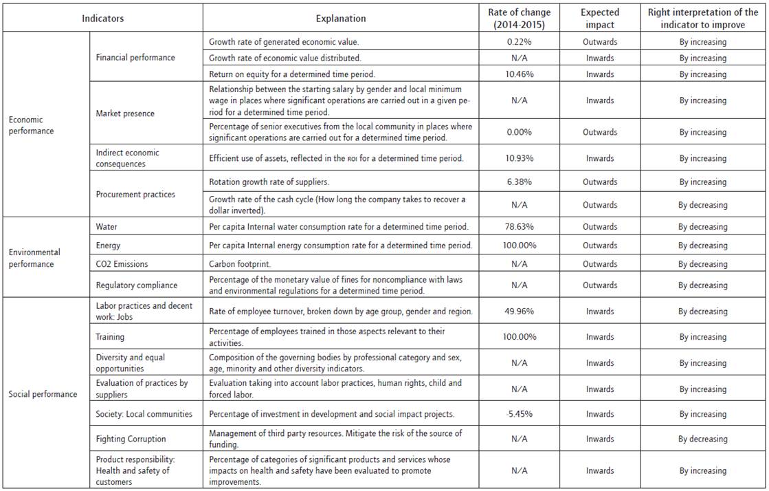 It is also important to harmonize responsibility regarding management reports (Tschopp & Nastanski, 2014; Núñez-Chicharro, Alonso-Carrillo, & Pontones, 2015), as well as the decisions on which instruments and standards will be used by the company for assessing and measuring CSR practices (Schwalb & García, 2004). However, it is frequent that these types of studies include the stakeholder approach (Isa, 2012) and the environmental, economic, and social dimensions of the company. The debate on the implementation of CSR practices and how to carry out this process has been increasing (Correa, 2007; González, Rodríguez, & González-Millán, 2014; Polanco, 2014).