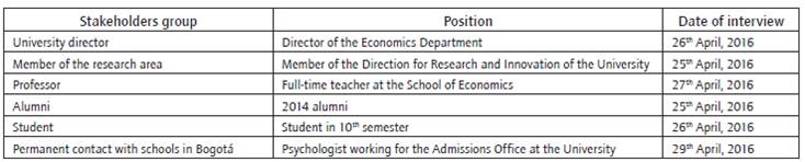 We based our study on Sergio Arboleda University, a traditional Colombian higher education institution founded in 1984. In 2015, the University received the High Quality Accreditation certificate, the greatest educational distinction given in Colombia by the National Ministry of Education. Its mission states that the University is at the service of the comprehensive training of new professionals according to humanistic and Christian principles, who are capable of leading economic, social and cultural development. Today, it is present in three regions of the country. Its main campus is located in Bogota (the capital of Colombia) and has two additional campuses in Colombia, located in Santa Marta and Barranquilla, and two other in Madrid (Spain) and Miami (U.S.A.). Sergio Arboleda University has many initiatives to improve its stakeholders' development. Among them, the Entrepreneurship Center, the Female En-trepreneurship Center, the Research and Innovation Direction, and several projects in conjunction with the Mayor's office and the national government.