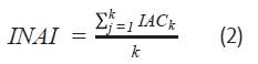 Donde INAI = índice de adopción de innovaciones, IAIC k = índice de de desempeño de la categoría k y k = Número total de categrorías.