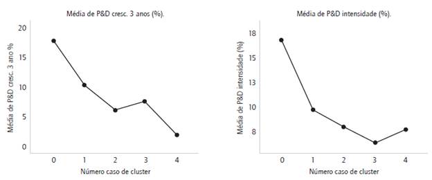 Da mesma forma, observou-se uma diferença estatística-mente significativa na intensidade de investimentos em P&D entre os grupos de empresas analisadas (H2C). Essa assertiva, no entanto, também se revela inversa à relação prevista, uma vez que as empresas que não emitem relatórios de sustentabilidade apresentaram maior intensidade nos seus investimentos em P&D do que as empresas que emitem mais relatórios de sustentabilidade (gráfico 4). Isso implica que as empresas que realizam altos investimentos em P&D desconsideram que a decisão de elaborar relatórios de sustentabilidade seja um elemento importante no relacionamento com suas partes interessadas, conforme destaca Froehlich (2014).