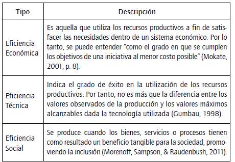 Tabla. 2: Tipos de eficiencia.
