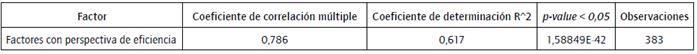 Tabla 6: Análisis de regresión lineal de la perspectiva de eficiencia con todos los factores propuestos.