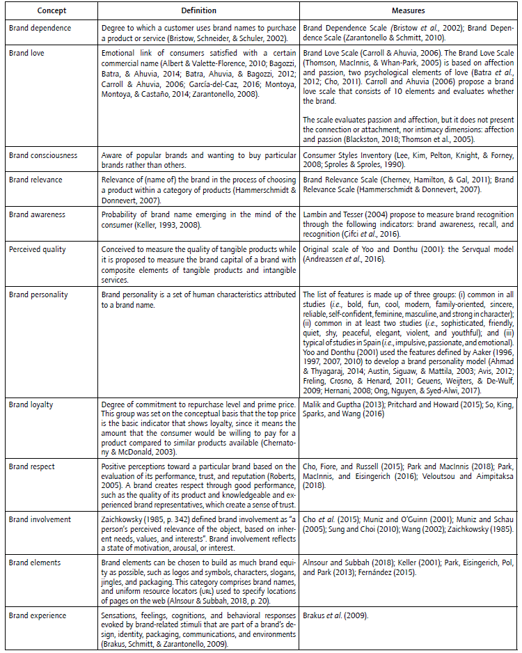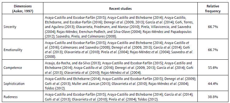 The brand then ceases to be a symbol and becomes an element of relationship with the consumer, who forces organizations to work on values such as notoriety, personality, perceived quality, and loyalty (Alvarado & Lucano, 2015, p. 29). There are many dimensions that can be evaluated in the brand (Escobar-Farfán et al., 2016). Table 2 shows that one of these elements is emotionality, a fundamental pillar of the lovemark (Batra et al, 2012).