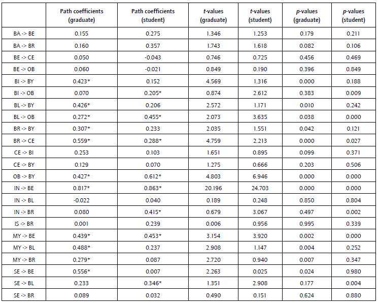 Table 10: Summary of the multi-group analysis (graduated-student).
