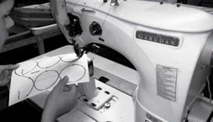 Os treinamentos aconteceram semanalmente e eram ministrados e supervisionados pelo gestor de produção. Através de conteúdo programático para a capacitação, com, aproximadamente, 20 horas de duração, a prática inicial era feita através de folhas guias (figura 5). A capacitação do colaborador encerrava-se logo que este tivesse aptidão para costurar em cabedais; então a aprovação era concedida pelo gestor de produção.