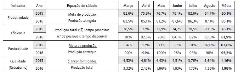 Com a aplicação do método, percebeu-se o impacto em alguns indicadores de desempenho que a empresa prioriza, comuns aos objetivos estratégicos da MA. Na tabela 1, está identificada a relação dos indicadores no período analisado com o mesmo período do ano anterior.