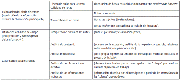 Tabla 3: Recolección y análisis preliminar de la información durante la observación participante.