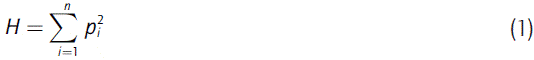 Finalmente, una vez recolectada y acumulada en una base de datos la información para las 65 empresas, se procedió a calcular el índice de Herfindahl para las preguntas 2, 3 y 4, de acuerdo con la siguiente formulación matemática: