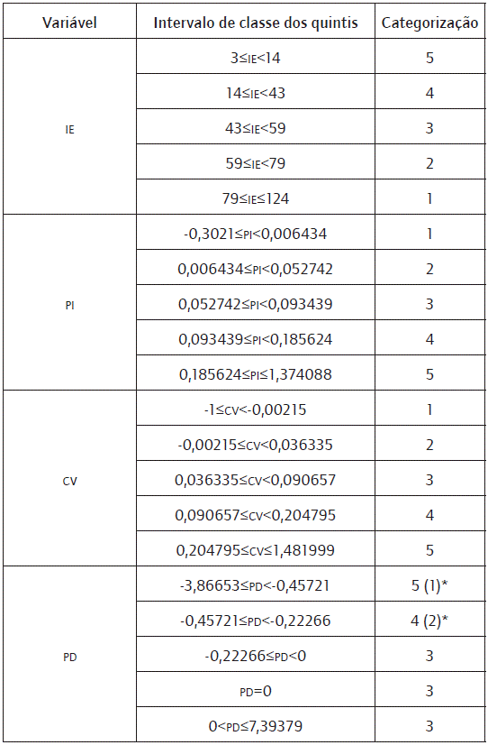 * Se a soma dos escores para a IE, CV, E PI é inferior a 7,5 e o PD é o (segundo) quintil mais baixo, atribui-se os números 1 e 2 como a pontuação PD para o estágio de declínio. Fonte: adaptado de Park e Chen (2006) e Lima et al. (2015).