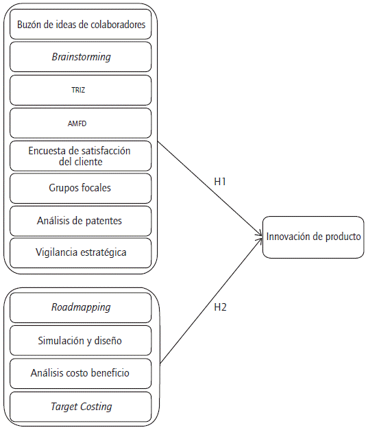 Figura 2: Modelo de relaciones entre herramientas e innovación de producto.