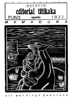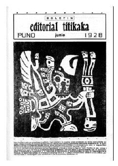 Al respecto, Usandizaga puntualiza que la propuesta estética y la reflexión ensayística que surge en el Boletín Titikaka fue "una reserva de motivos andinos, en estos textos que no pretenden solamente informar o divulgar el conocimiento desde este mundo, sino que incorporan, con mayor o menor fortuna, la lógica y el pensamiento de lo andino al ejercicio literario" (XXII). Nuestra lectura de este movimiento, y en particular de su Boletín, es que una de las vertientes críticas que se instaló en la vanguardia de la época no solo fue la "reserva de motivos andinos" a nivel discursivo, sino igualmente a través del imaginario visual al que recurre mediante grabados y xilografías de artistas serranos, afiliados al grupo Orkopata, y que tienen por objetivo dar cuenta de una estética que se asienta en la cultura andina, tal como lo vemos en los ejemplos de portadas e interiores del Boletín (Imágenes 1, 2, 3 y 4).