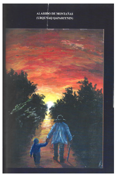 Vemos, entonces, que el imaginario visual obscuro de la pintura (Imagen 5) adquiere sentido porque la concepción de muerte a la que alude el poema no es la muerte entendida desde la cosmovisión andina, sino la idea de la muerte impuesta por la cultura occidental, católica apostólica romana, que se buscó imponer mediante la evangelización. Por este motivo, entre el poema y la pintura se produce un tinkuy de significados contrapuestos, como una forma de resistencia al universo simbólico que impuso la colonización. Esta reivindicación se presenta, además, en la sobrevivencia y reivindicación de la cultura andina que se plantea en el poema que da título al libro "Urqukunaq qapariynin/Alarido de montañas" (Imagen 6), en el cual la reiteración de la negación es un grito de resistencia: