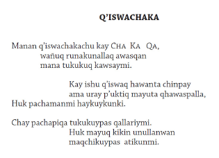Aquí, la inclusión del alfabeto quechua no es menor, pues a través de su imagen el hablante lírico invita a los poetas quechua a sacudir el lenguaje, a realizar un pachakuty a través de la palabra, para que la voz del mundo andino no se transforme en una "palabra petrificada" en el tiempo. Así, el poemario pareciera llamar al surgimiento de una poesía que sea movimiento, imagen y canto cósmico, y que, sin desprenderse de sus orígenes telúricos, rituales y lingüísticos, sea también moderna y esté vinculada a la experiencia del sujeto quechua actual.
