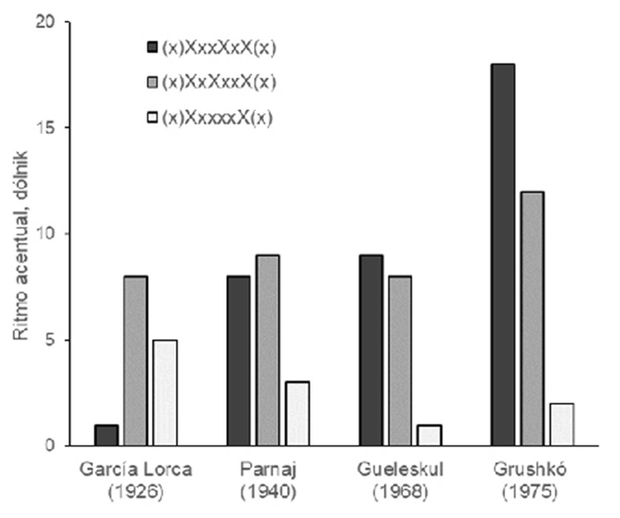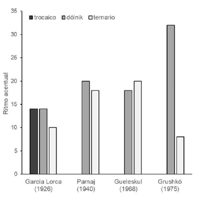 Análisis cuantitativo léxico y rítmico de las traducciones métricas rusas del poema lorquiano “Reyerta” (1926) realizadas por Valentín Parnaj (1940), Anatoli Gueleskul (1968) y Pável Grushkó (1975)