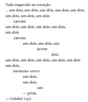O poema de Haruyama dá ênfase ao caráter regular da repetição, em um bloco unificado, enquanto o poema de Mário inclui na monotonia da marcha um elemento circunstancial e coloquial. Em outro experimento em que a visualidade é um aspecto determinante, Velimir Khlebnikov, em um poema igualmente sem título, traz uma sequência de neologismos:
