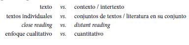 EN 2016 LA PUBLICACIÓN DE la traducción al ruso del libro Distant Reading1 (2013) de Franco Moretti fue un acontecimiento emblemático, pues tanto el propio libro como su título se han convertido en un símbolo de las humanidades digitales modernas.2 Esta colección retrospectiva de los artículos del autor publicados entre 1994 y 2011, que "da una buena idea del desarrollo investigativo de Moretti durante las dos últimas décadas" (Sobchuk, "Uvidet za dereviami les" 320),3 puede llamarse, siguiendo a los traductores del libro al ruso, "un manifiesto consolidado del investigador" (Moretti, Dalnee chtenie 4). Su traducción inició una polémica activa y fructífera en las páginas de Novoe Literaturnoe Obozrenie (2018, núm, 150, sección "Libro como acontecimiento"), la revista rusa más influyente en el campo de la teoría literaria. La tertulia, que los colegas rusistas después resumieron y comunicaron a Moretti, tuvo gran repercusión. En tal ocasión fue escrita la primera versión del presente artículo (Pilshchikov, "Franko Moretti i novy kvantitativny formalizm"), versión que, sin embargo, era más breve y exponía de manera preliminar las ideas que voy a desarrollar ahora.