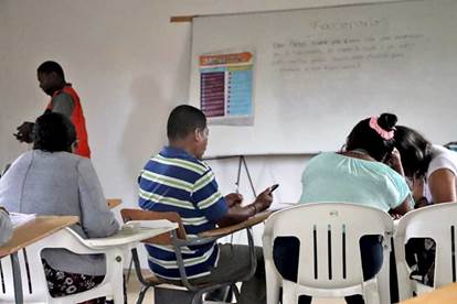 Figura 5: Al centro y de espaldas, Nativel, en una de sus clases de nivelación de primaria