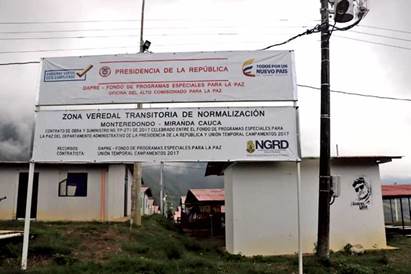 El punto 3 del acuerdo final de paz referido al fin del conflicto armado y la dejación de armas configura la existencia de 20 Zonas Veredales Transitorias de Normalización (ZVTN), espacios donde desde 2016 los excombatientes convivirian y desarrollarian sus primeras acciones de reincorporación mientras se preparaban para el tránsito a la vida civil. Estas zonas, a su vez, fueron ubicadas estratégicamente en territorios donde el conflicto interno armado tuvo mayor presencia, con el fin de articular los propósitos del acuerdo de paz con los escenarios de perdón y reconciliación en comunidades locales afectadas por la violencia.
