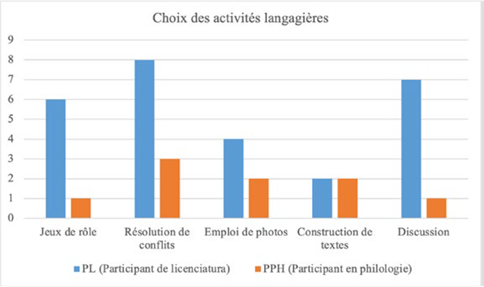 Figure 1:: Les réponses des choix des activités langagières.