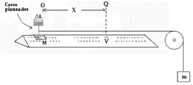 Los datos medidos (teóricos) de la masa M del carro planeador, la masa suspendida m y la aceleración de la gravedad son respectivamente:
