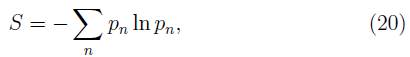 Desde el punto de vista de la teoría de la información, supongamos un sistema físico en el cual todo lo que es conocido acerca de la configuration interna de este es que el sistema puede ser encontrado en alguno de un número de estados con probabilidad Pn para el n - esimo estado. Se define la entropía