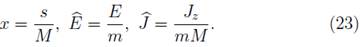 representing the proper time s and the constants of motion: Energy (E) and the angular momentum in the z direction (J z ).