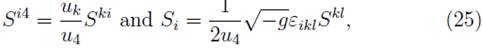 The fifth equation is given by contracting the spatial part of equation (10) with Si (λ = 1, 2, 3). The result is multiplied by S 1 S 2 , S 3 and with the MP condition (3) we have the relationships [53]: